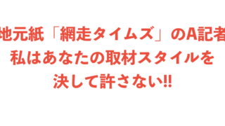 A記者の手法には”うんざり”私たち「網走の未来を考える会」は、地元紙「網走タイムズ」の主力記者 A氏のワンサイドな取材と原稿の書き方を強く非難します。このサイト「ホントノコト」に掲載した記事「不思議な地元紙 Part1」でも書きましたが、網...