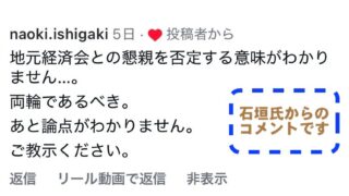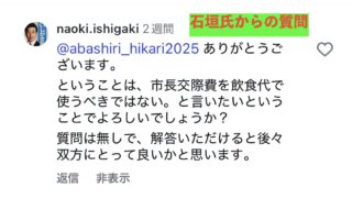 インスタ上での「公開議論」の目的網走市の市長交際費について、石垣市議と議論を続けています。石垣氏との”議論スタイル”は、私たちのインスタに彼から質問がコメントとして寄せられ、その質問にインスタ上で返信するーという形を基本としています。石垣氏...