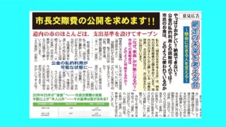 網走市の水谷市長は、市長交際費の非公開を頑なに続けます。道内のほとんどの市は「公開」しています。なぜ、公開しないのでしょう?ー。その理由は、水谷市長にしかわかりません。交際費は、市民が収めた税金が原資です。市民は、公金がどのように使われてい...