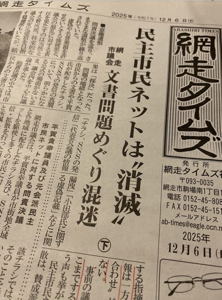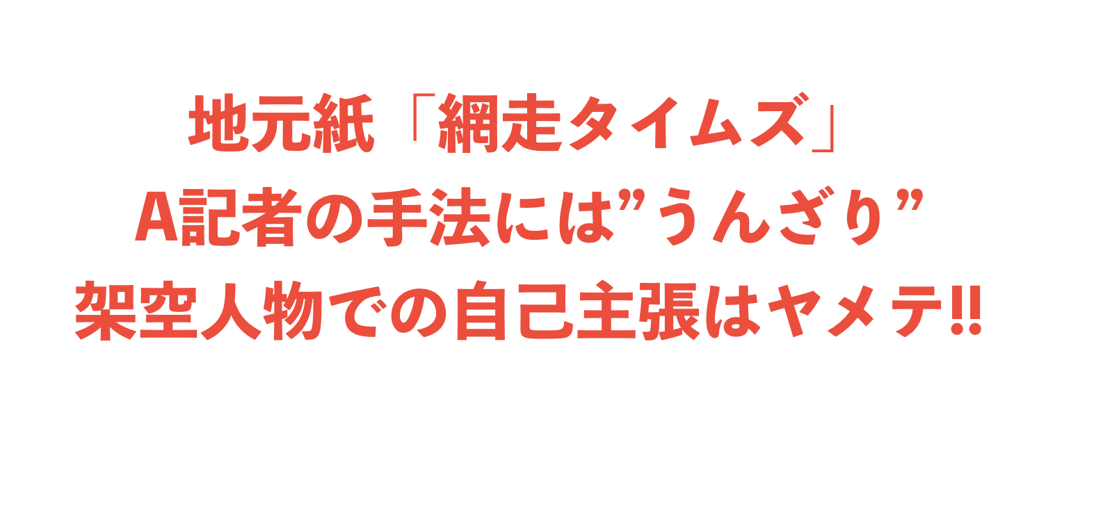 私たち「網走の未来を考える会」は、地元紙「網走タイムズ」の主力記者 A氏のワンサイドな取材と原稿の書き方を強く非難します。