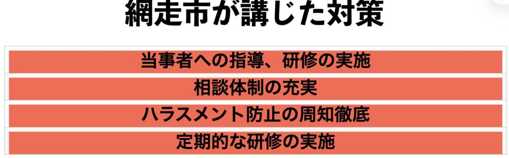 ハラスメント処理委員会で対応した2件について、市は以下のような対策を講じたといいます。